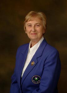 with her Captain's badge by Sue Johnston, President of the LGU.