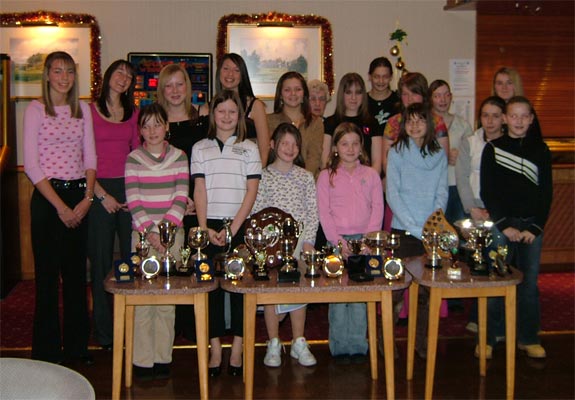Monifieth Golf Club junior girls held their presentation of prizes in the clubhouse on Monday 3rd January 2005.  A large gathering of  girls, parents, grandparents and club members heard how the girls had represented the club in competitions at 26 different golf courses all over Scotland, from Nairn in the North-East to Prestwick in the South-West, winning prizes at most of the venues.  They also heard that five of the girls were selected for the Scottish Ladies' Golf Association Development Squad, receiving tuition from the Scottish Ladies Coach, Karen Dallas.