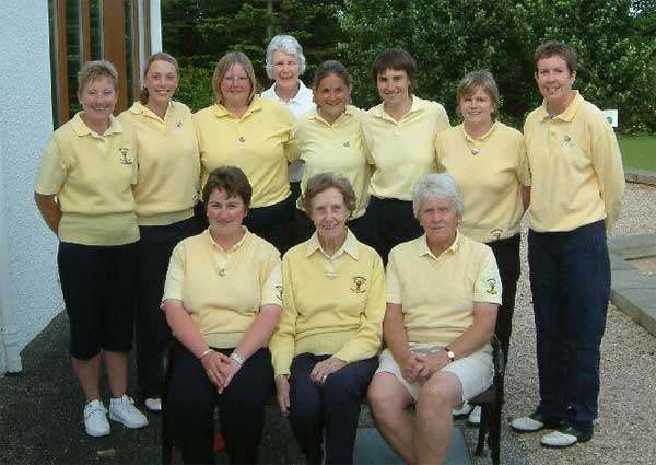 Back row (left to right): Sheena Boyd, county captain, Susan Woods, Elaine Cuthill, Ruth Rankin, May Hughes, Elizabeth Nelson, county vice-captain.