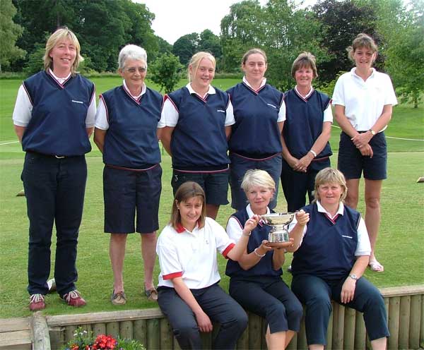 Lanarkshire team with West Division women's inter-county team championship trophy after they beat Renfrewshire, title-holders Dunbartonshire & Argyll and Ayrshire over three days at Lanark Golf Club.
